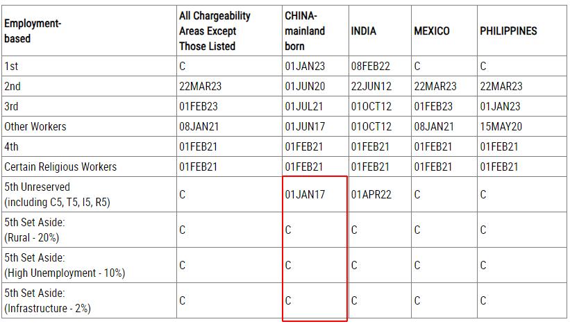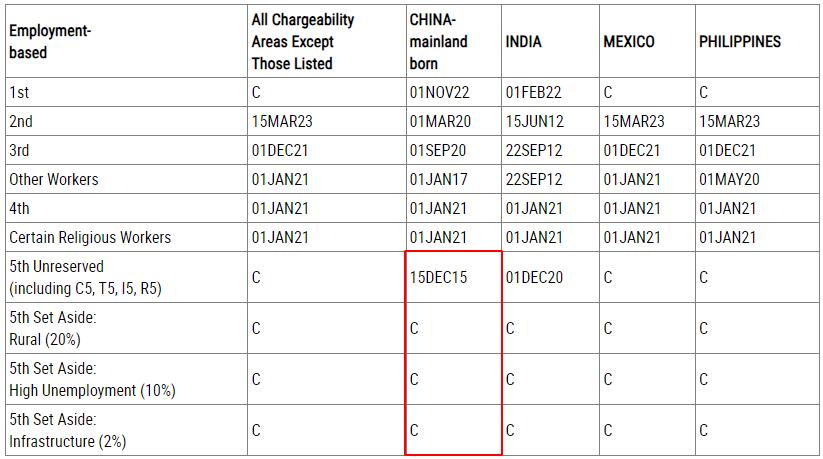 B表:Dates For Filing Of Employment-Based Visa Applications