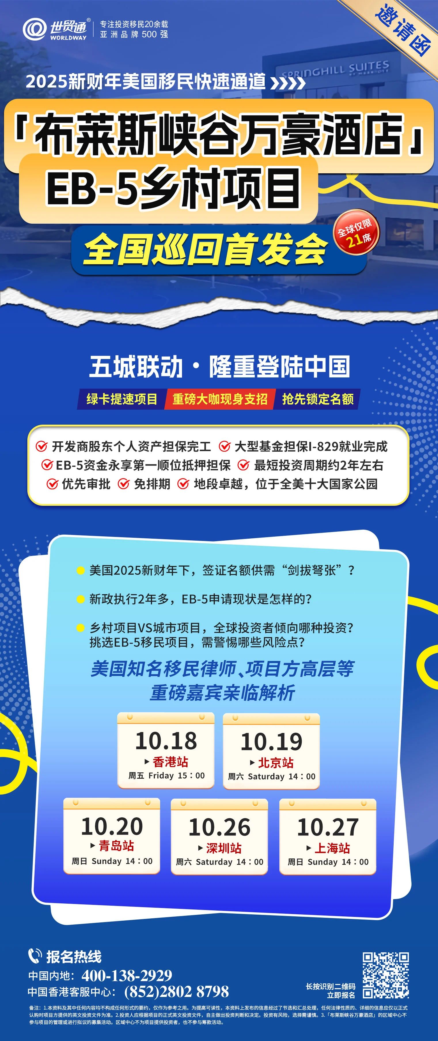 「布莱斯峡谷万豪酒店」EB-5项目全国巡回首发会,席位预约热线,详询中国内地:400-138-2929,中国香港客服中心:(852)2802 8798