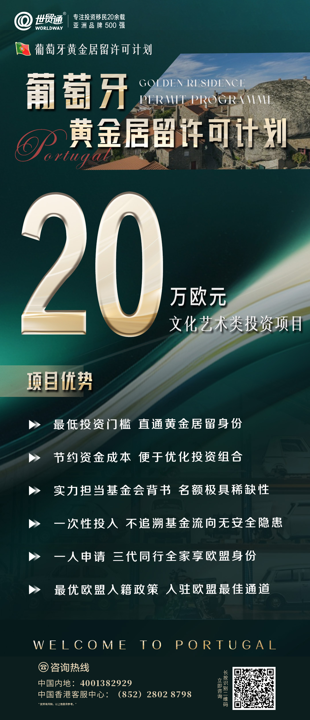 葡萄牙文化艺术捐赠项目同样备受投资者青睐。根据法案规定,申请人仅需投资20万欧元,即可全家三代申请葡萄牙黄金居留身份,低成本便捷获欧盟护照。