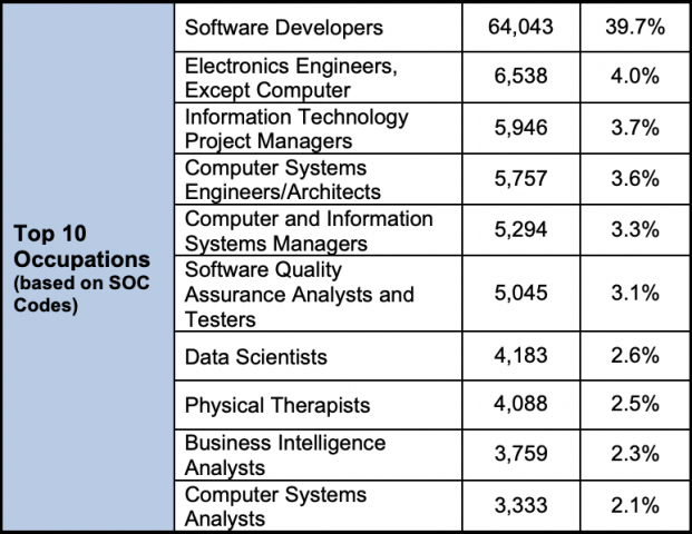 申请最多的岗位几乎全部来自STEM领域,说明技术人才仍是主流