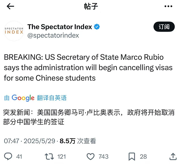 在美国国务院公布这份声明后,美国务卿鲁比奥在社交媒体上发文证实了这一消息。