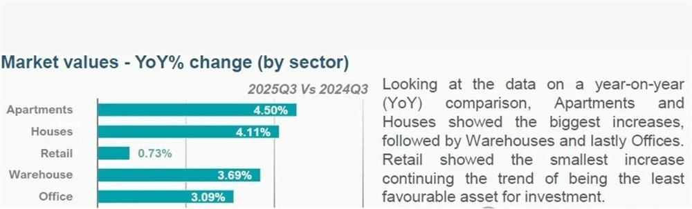 • 住宅类资产全面上涨,其中公寓同比涨幅4.50%,别墅同比涨幅4.11%
