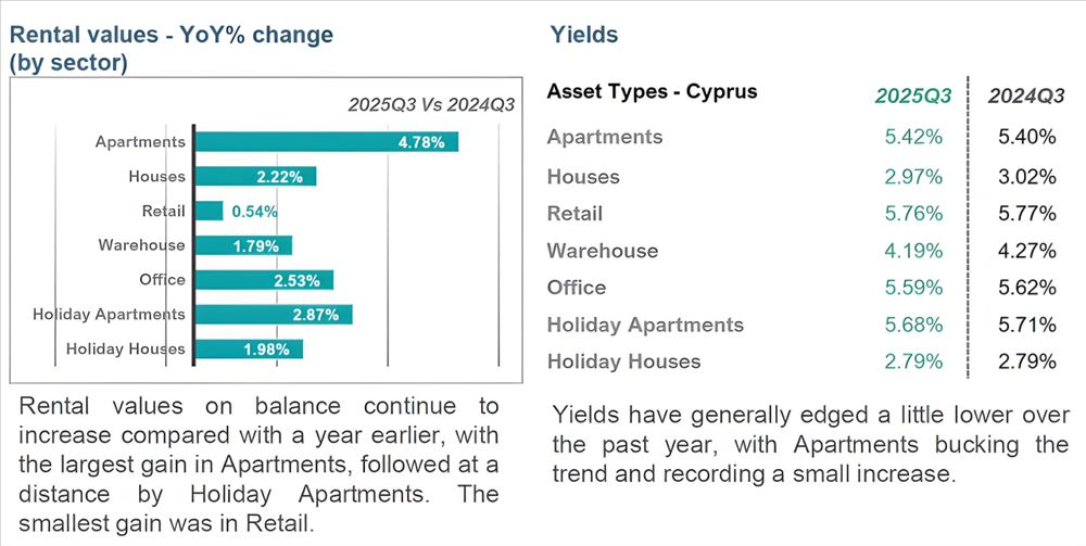 • 帕福斯的别墅和公寓价格相对亲民,同比涨幅保持在4%左右,呈现出“稳健增长 + 高性价比”的典型特征。