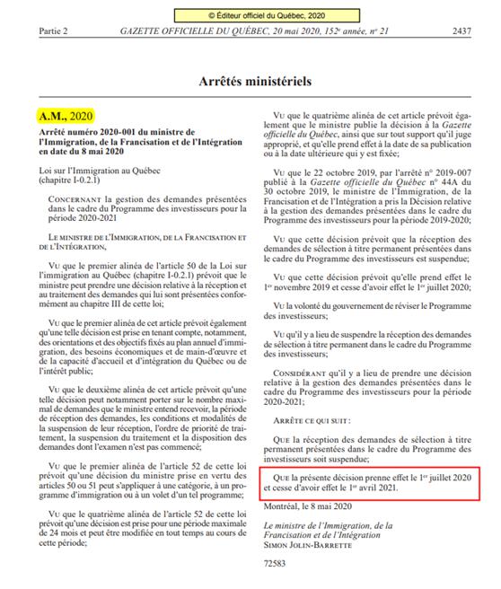 近日,加拿大魁省政府发布了最新政府公告,宣布魁省投资移民项目开放日期将会推迟,继续暂停至2021年4月1日。2019年10月30日,加拿大魁省政府曾宣布暂时停止接受魁省投资移民申请,并且暂定在2020年7月重开。