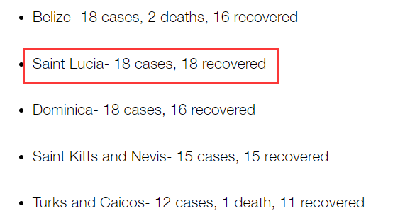 在一份关于加勒比地区新冠疫情报告中,截至2020年6月4日,圣卢西亚全国累计18例患者全部康复,治愈率100%。这对于渴望获得圣卢西亚身份的广大投资人而言,无疑是一大利好。