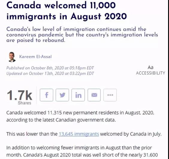 近日,加拿大公布了2020年8月份的新移民数据,8月共接纳了11,315位新移民,相比7月来说有所减少。而根据加拿大“百万移民计划”,2020年吸纳新移民的目标是34.1万,根据加拿大统计局的数据报告,在今年1月至8月间,总共只有不到13万新移民到达加拿大。