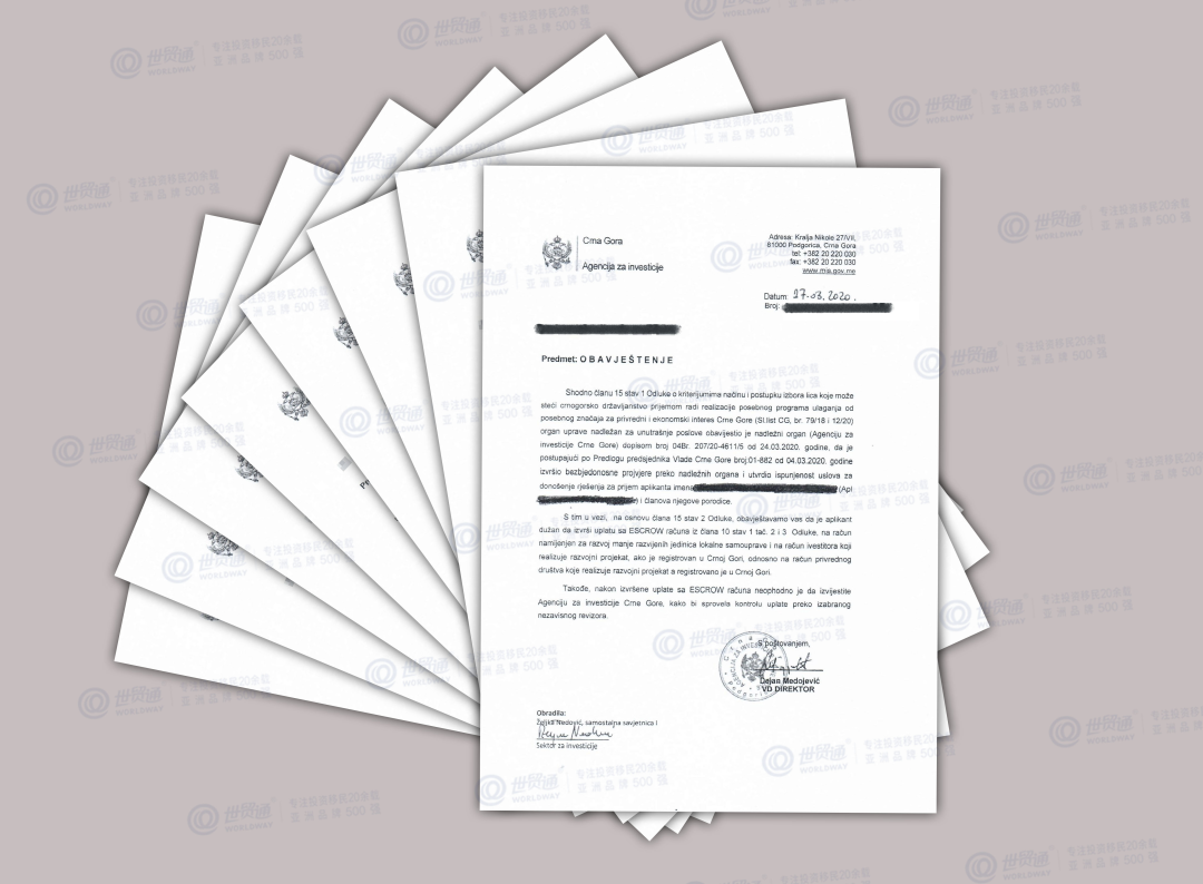世贸通一大批黑山移民客户两个月内获批