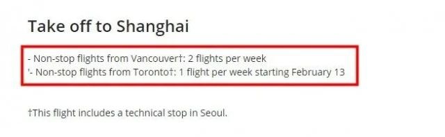 目前,加航官网已经开售多伦多飞上海的机票,票价为$1711起。不仅如此,加航还计划开通加拿大其他几个主要城市飞上海的航线,其中包括蒙特利尔、温尼伯等。