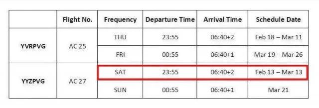 好消息!根据加拿大航空官网显示,加拿大航空将于2月13日开始重开多伦多直飞上海的航班。据悉,从2月13日开始,加航计划每周逐步增加一班多伦多往返上海的航班,预计将于每周六晚上23:55分起飞,并且会在首尔进行技术性经停。