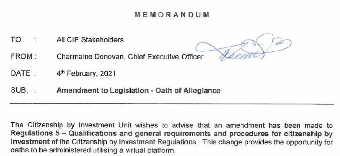 安提瓜移民局在当地时间2021年2月4日宣布,申请人可以通过视频进行宣誓了。也就是说,替换了过去在第一个五年内必须登陆安提瓜完成宣誓才能更新护照的要求。这对于投资者来说,真是一个省时省力的好消息!