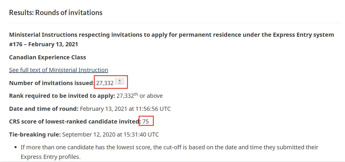 近日,加拿大联邦移民部快速通道(Express Entry)移民审理系统针对加拿大经验类别(CEC)进行了最新一次筛选,将池子里的2.7万人全部邀请!本次抽取分数为历史上最低一次,只要75分!