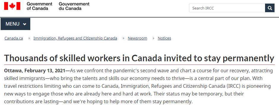 随后,加拿大移民局发出官方声明,75分是真的!据悉,加拿大政府认为,当下的加拿大需要通过海外移民者来填补本地高度空缺的劳动力市场,恢复本地经济。这次筛选也是政府为了在2021年实现401,000名新移民目标做出的努力。
