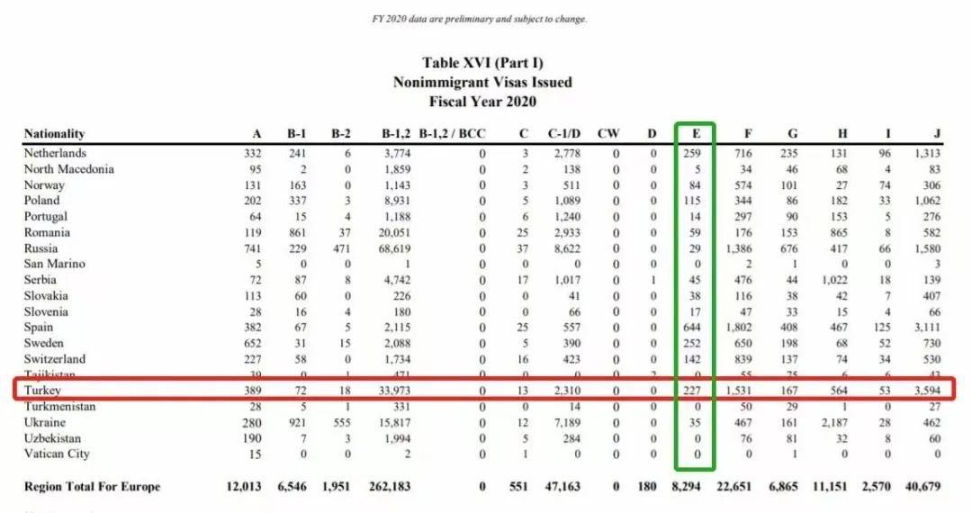 数据显示,E2签证是美国拒签率较低的签证,土耳其护照是上佳跳板