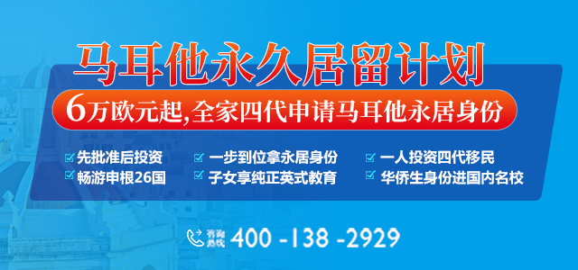 移民马耳他,除了能收获全家四代的永居身份之外,还能让您从子女教育、医疗、养老、居住等各方面都收获满满。近期,马耳他永居计划项目新政正式公布及实施,投资者捐款6万欧元起并租房,可全家四代移民马耳他,一步到位获马耳他永居,其申请条件更加简化、操作更加简单、投资金额更低等优势,将促使马耳永居计划项目更加受投资者追捧。有意向移民马耳他的投资者,宜把握新政红利期,趁早办理,早申请早受益!