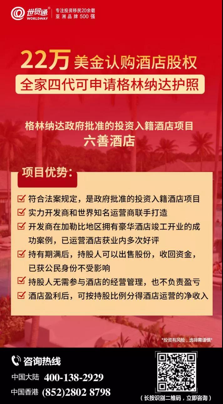 重磅提醒,格林纳达六善酒店项目60%股权已被认购,有意向通过该项目移民格林纳达的投资人,宜抓紧时间申请,早申请早受益!