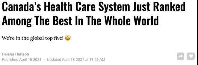 近日,美国新闻(U.S. News)公布的医疗系统排名显示,加拿大排在全球第四位。这也再一次力证了加拿大拥有高度发达的公共医疗保健系统!同时,U.S. News还将加拿大列为全球最佳国家,生活质量排名同样全球第一。