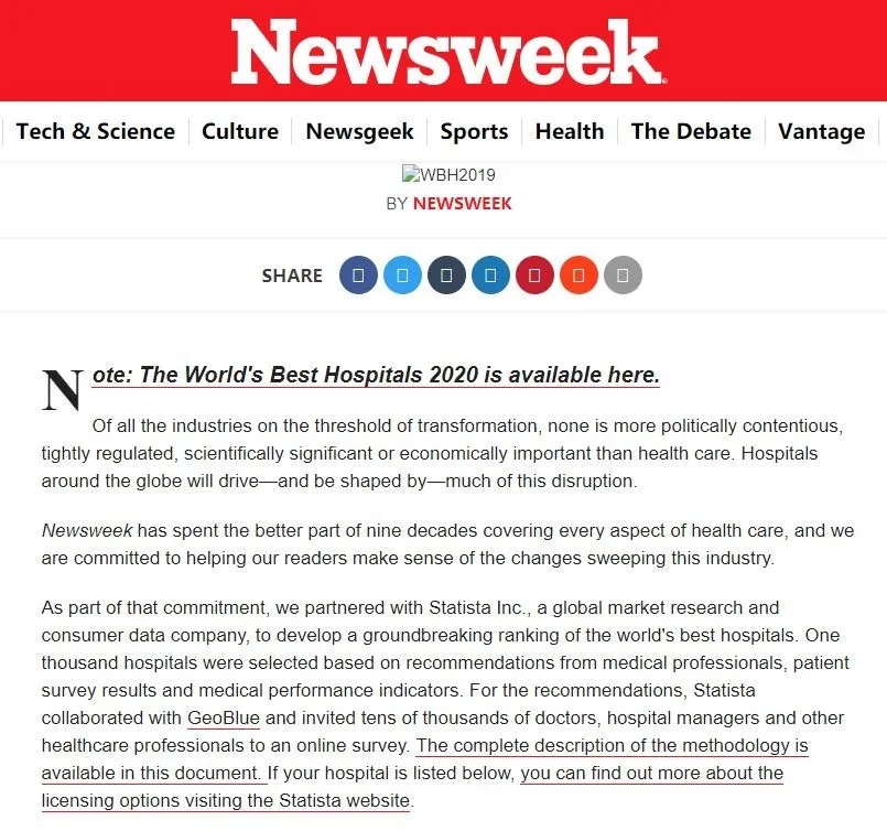这份榜单从医院患者体验、同行建议、医院关键绩效指标这三个方面对21个国家的1500多家医院进行了评估。