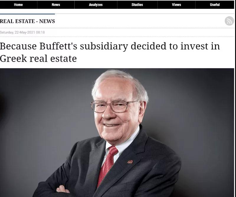 据希腊财经网站Capital.gr的报道,股神巴菲特的伯克希尔·哈撒韦家庭服务公司决定投资希腊房地产领域,因其预见到希腊房地产的巨大商机以及过往的巨大投资购买需求,并有望在未来几年达到峰值。