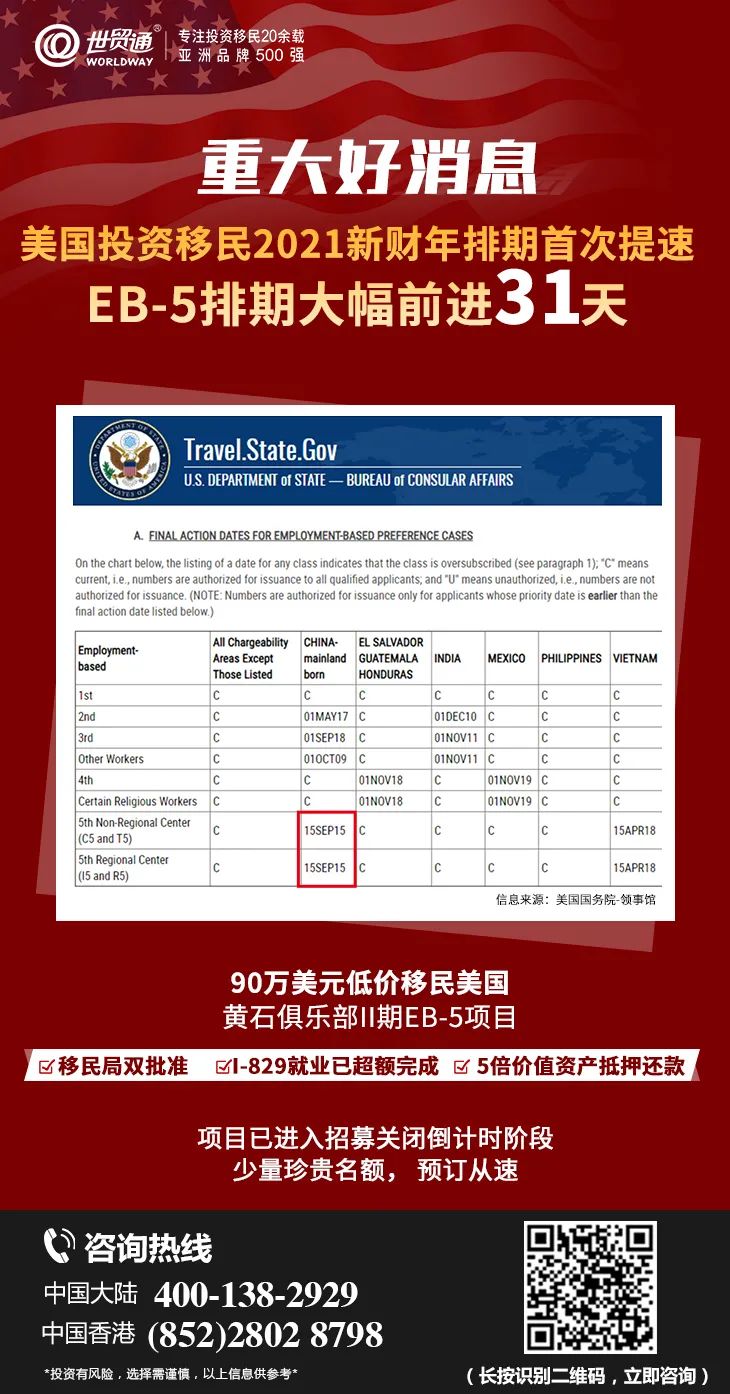 世贸通也将持续关注EB-5签证排期的进展并向您带来及时的分享。