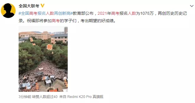 另一方面,再过几天,一年一度的高考也即将拉开帷幕。教育部近日公布,2021年高考报名人数为1078万人,再创历史记录。