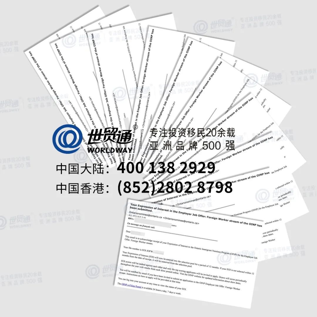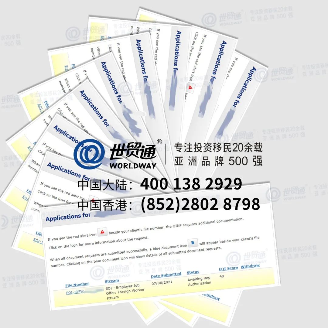 近日,世贸通推广的加拿大移民项目好消息不断!继加拿大安省雇主担保移民第3次EOI抽分,世贸通助力多位“安省区域试点计划”移民客户成功获邀之后,近期世贸通各司文案团队和项目团队密切配合,又成功助力一大批客户纷纷提交安省EOI,并成功入池。这意味着,此批客户接下来只需安心等待邀请即可!