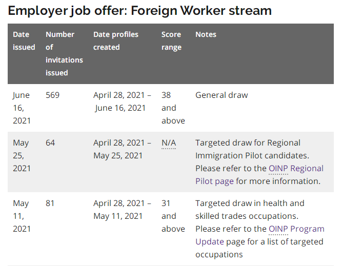 2021年5月25日第2次EOI抽选:定向针对安省 “区域试点计划”类别的申请人,共发出64份邀请,无最低分数、入池即抽中。