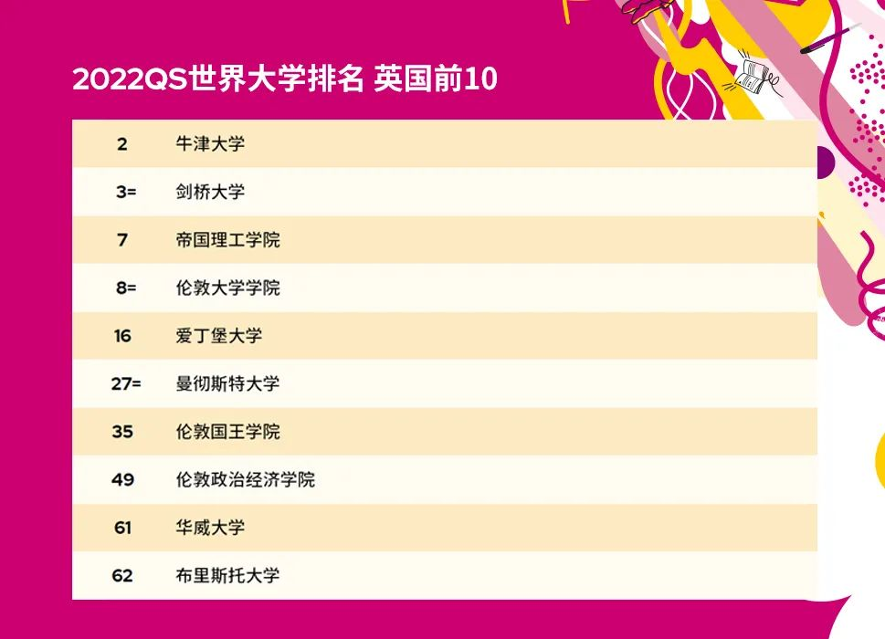 帝国理工学院、伦敦大学学院、爱丁堡大学、华威大学等排名皆有提高。