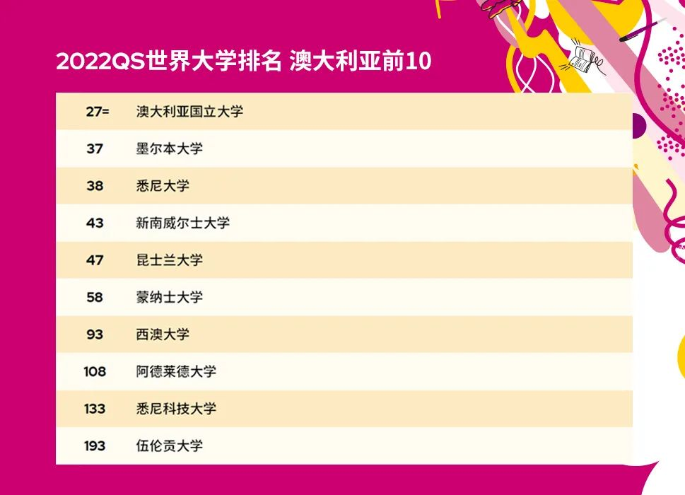 澳大利亚排名前四的大学今年的排名较去年都有所上升。澳大利亚国立大学重回世界前 30 名的榜单,位列第27 名。