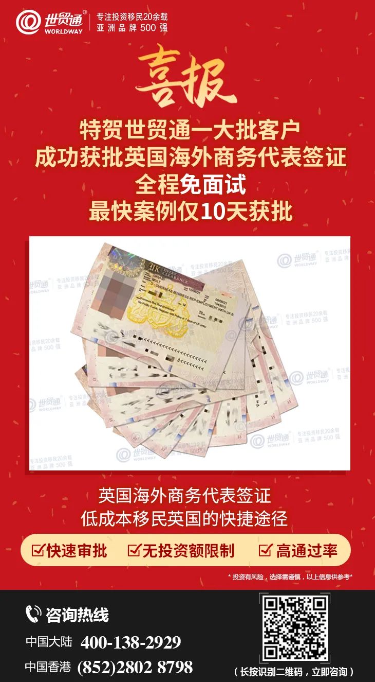 或选择投入成本低、审批速度快至5个工作日的英国海外商务代表签证,全家快速移民英国,子女即享受优质教育;