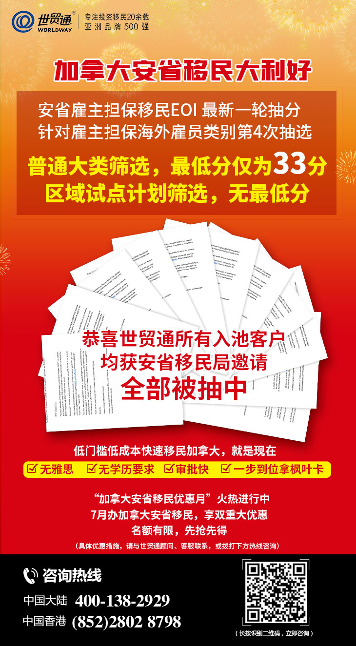 对于有移民意向的人士而言,目前正是移民加拿大的好时机,可抓住当下加拿大百万移民计划的大好时机,10万加币起,低门槛低成本快速移民加拿大,全家一步到位拿枫叶卡!目前,加拿大安省雇主担保移民项目申请条件宽松,对语言没有任何要求,不需要考雅思。投资人宜尽快行动,早申请早入池,早受益,抢占安省雇主担保移民EOI上线先机,低门槛快速移民加拿大,就趁现在!