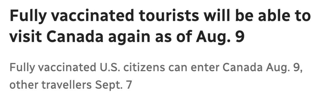 同时,根据此前加拿大宣布的重开边境计划,从9月7日开始,加拿大将允许其他所有国家的已经接种疫苗的旅客入境加拿大,且无需隔离。此外,加拿大政府也提醒所有入境者,无论是否在入境前接种了加拿大认可的疫苗,都需要提前准备一份隔离计划,以防旅行途中被感染。加拿大边境官员有权决定入境者是否符合免隔离要求。