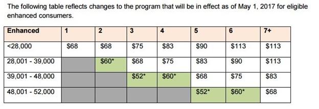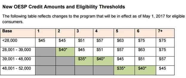 而对于一些低收入的高耗能(例如:家庭依靠电力取暖、家庭有高耗电的医疗器械)家庭,补助则会更多,如下图: