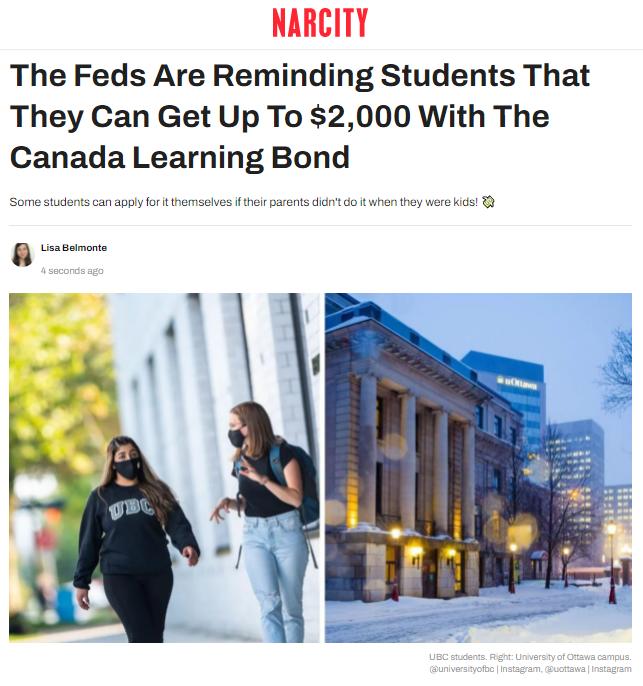 这是一项联邦政府为低收入家庭的儿童增加到注册教育储蓄计划 (RESP) 中的拨款资金。通过加拿大学习债券,政府向学生提供资金帮助以支付他们继续学习的费用,向注册教育储蓄计划 (RESP) 提供高达 2,000 加元的资金,无需供款和还款。