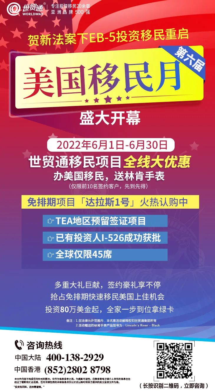 第六届美国移民月正火热进行中,世贸通移民项目全线大优惠,办美国移民,送林肯手表!多重大礼巨献,签约豪礼享不停,不容错过!达拉斯1号EB-5项目 全球仅限45席,珍稀名额,认购从速!