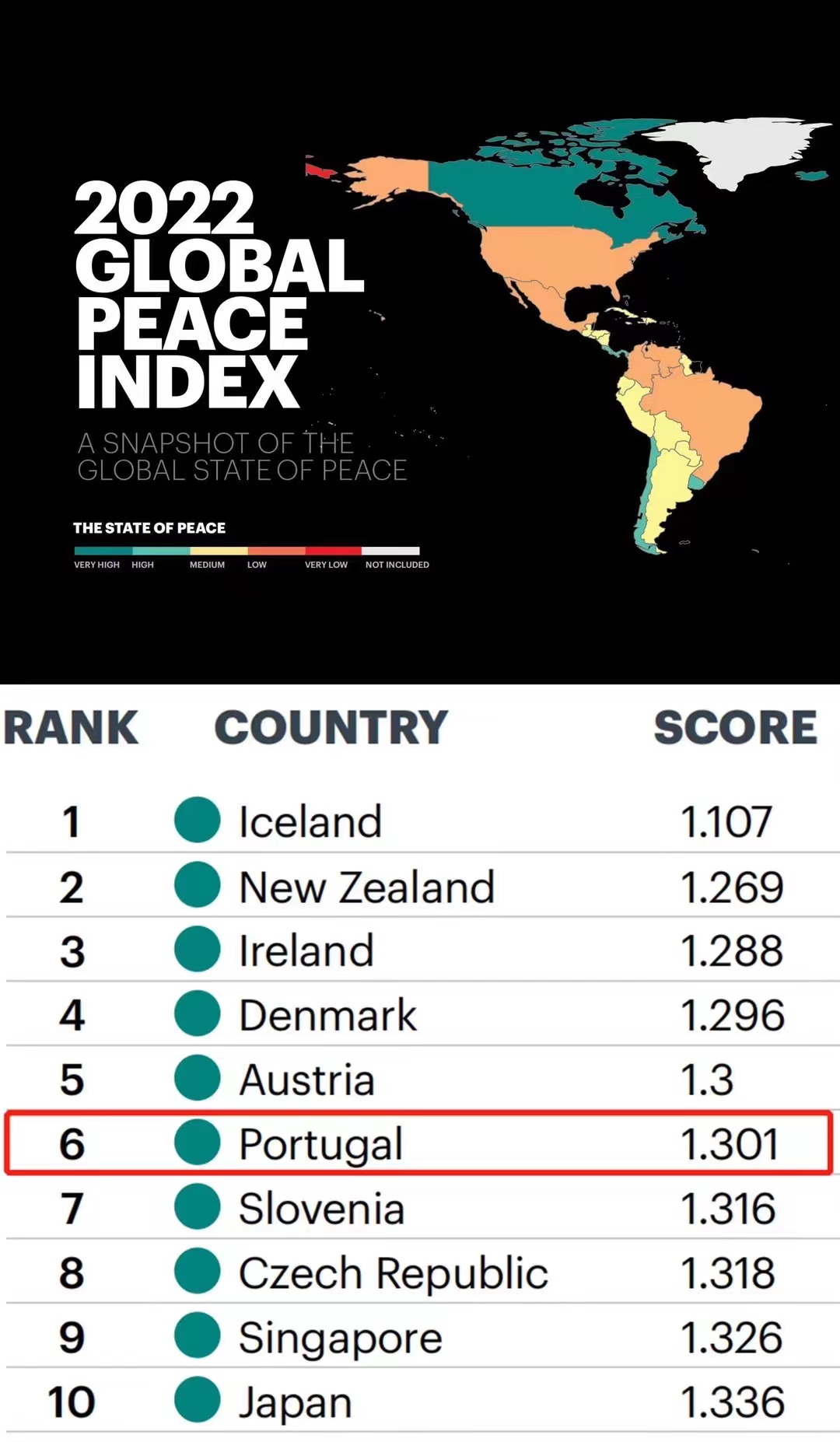 2022全球和平指数发布:葡萄牙排名前列