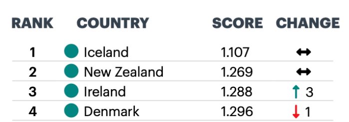 近日,2022年最新全球和平指数出炉,爱尔兰的排名连升四位,由去年的全球第七荣升今年全球第三。和平指数由经济与和平研究所公布,调查了全球163个国家和地区的安全稳定情况。