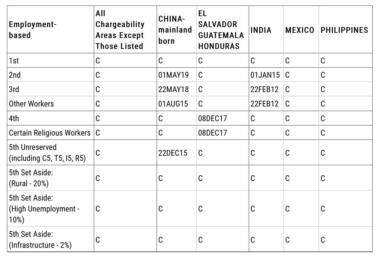 B表:Dates For Filing Of Employment-Based Visa Applications
