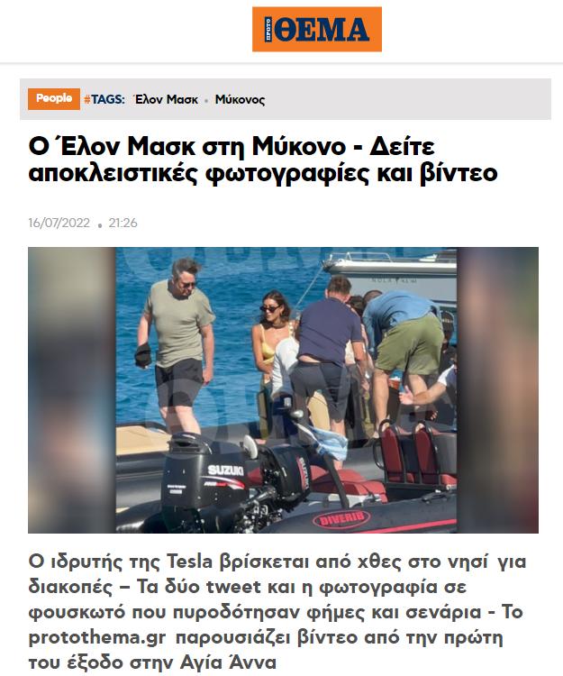 近日,特斯拉创始人、世界首富埃隆·马斯克到访希腊著名的富人岛米克诺斯岛,开启他的度假之旅。米克诺斯岛,是基克拉泽斯群岛之一,位于雅典东南95公里处,岛上五光十色的风景美不胜收,犹如爱琴海上一颗璀璨的明珠,吸引了世界各地的大牌明星、政商名流和游客聚集于…