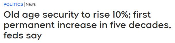联邦政府发表的一份声明称,除了通胀调整外,这将是自1973年以来首次永久性增加养老金。其中330万人老年人受益。目前,政府官网已经更新,65-74岁的养老金上限为每月666.83加币,75岁及以上的养老金上调10%,上限变为每月733.51加币,一年就是8802.12加币。