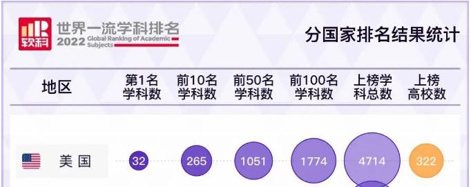 2022年世界一流学科排名:美国大学强势霸榜