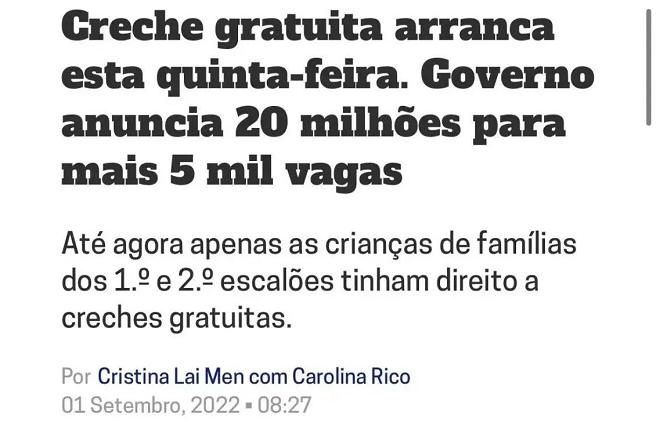 好消息,葡萄牙托儿所于2022年9月1日起全部免费,葡萄牙政府耗资2000万欧元为超过5000名儿童免除1-2阶段托儿所全部费用,所有在葡出生的适龄孩子都可以享受这一政策。