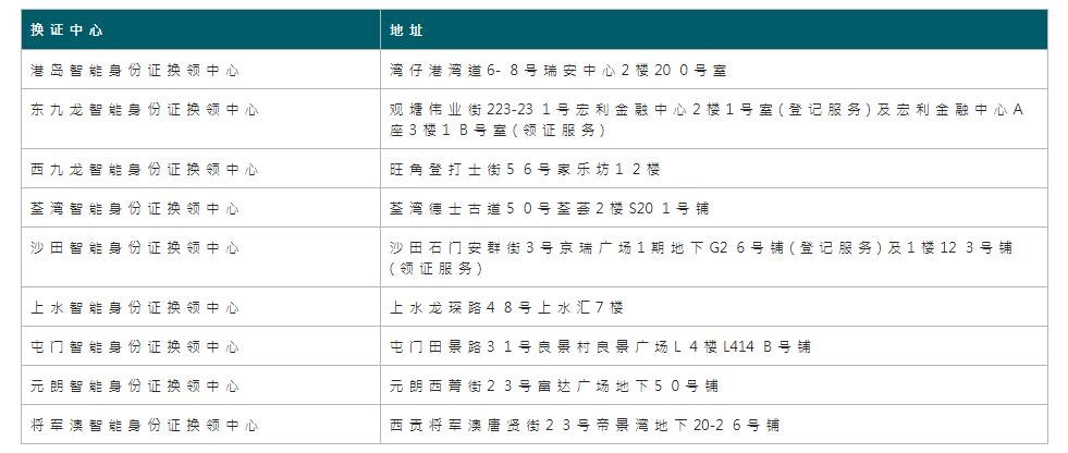 各换证中心的办公时间为星期一至六上午八时至晚上十时(公众假期除外),地址如下: