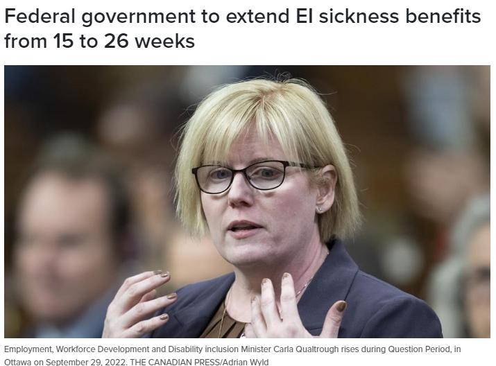 近日,加拿大联邦就业部长宣布,联邦政府将把就业保险(EI)疾病福利从15周延长至26周。