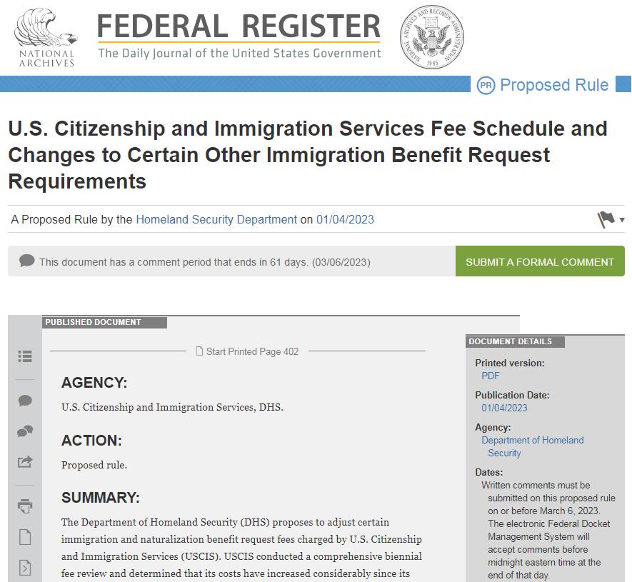 移民局此次发布的为提议草案,该拟议规则将在发布之日起60天内广泛征集民众对此次调整的意见。意见征集将截止到2023年3月6日。