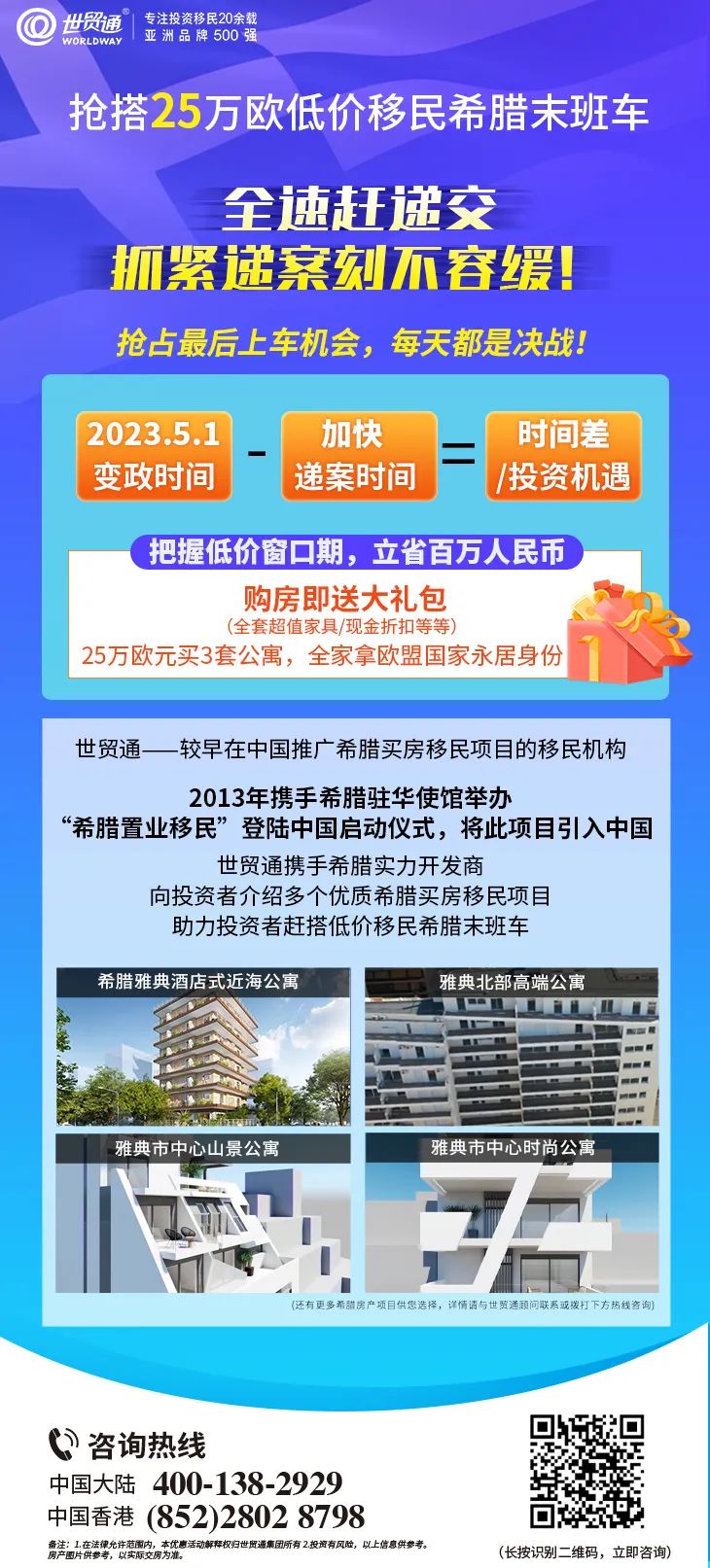 希腊25万购房移民已经进入倒计时,2023年5月1日起价格将翻倍,想要移民希腊却还在犹豫观望的申请人,要抓紧时间了!