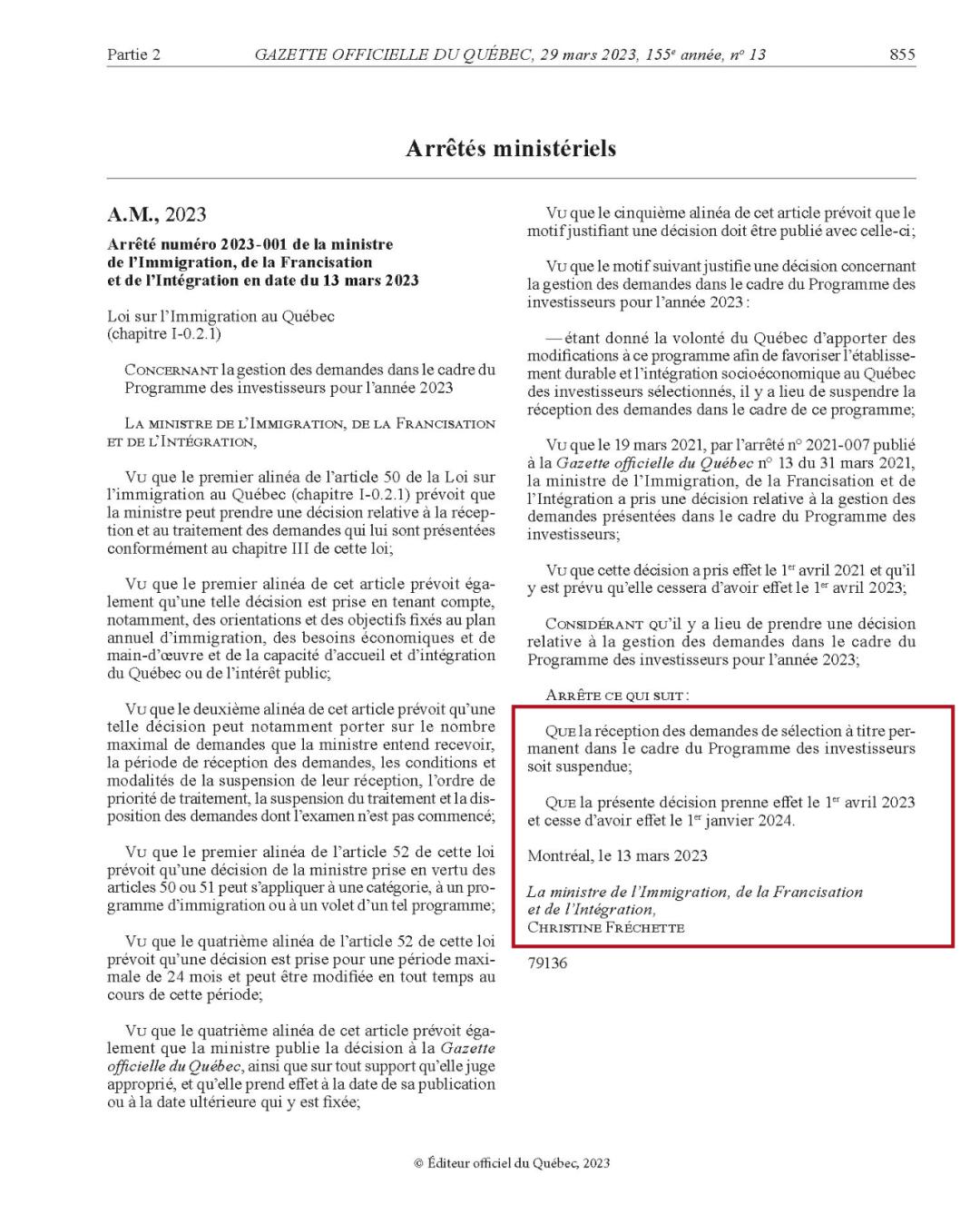 对于再次延期,魁省官方给出的解释是:鉴于魁北克希望对该计划进行修改,以促进选定投资者在魁北克的可持续定居和社会经济融合,暂停接收该计划下的申请是适当的。