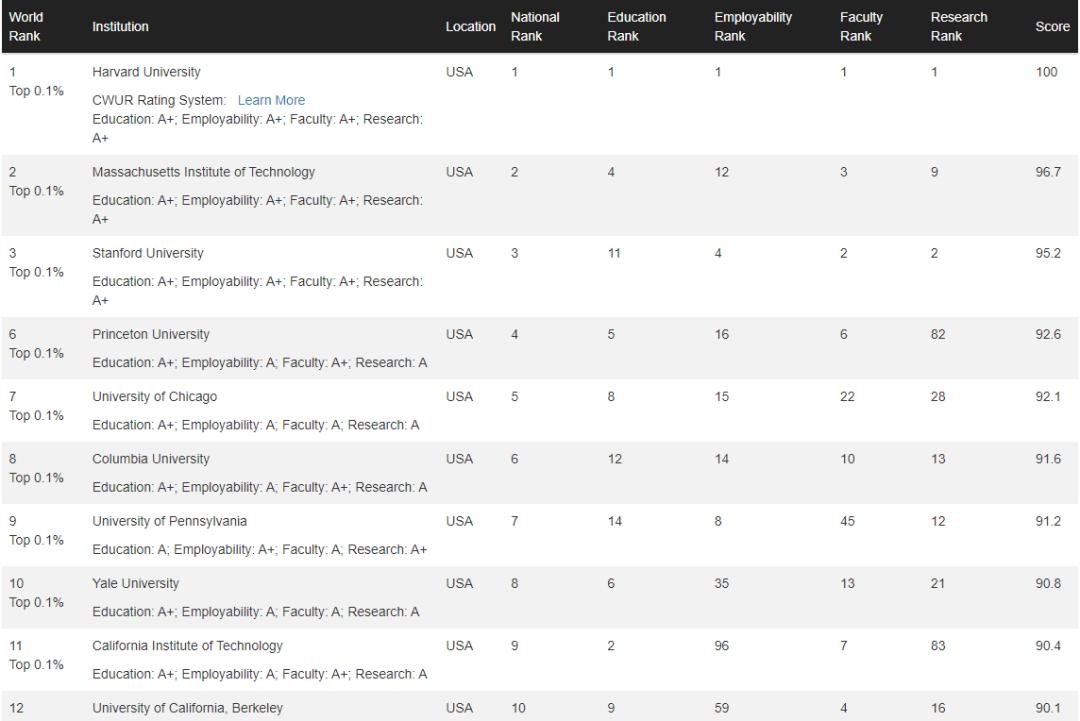2023CWUR世界大学排名出炉,美国高校上榜最多