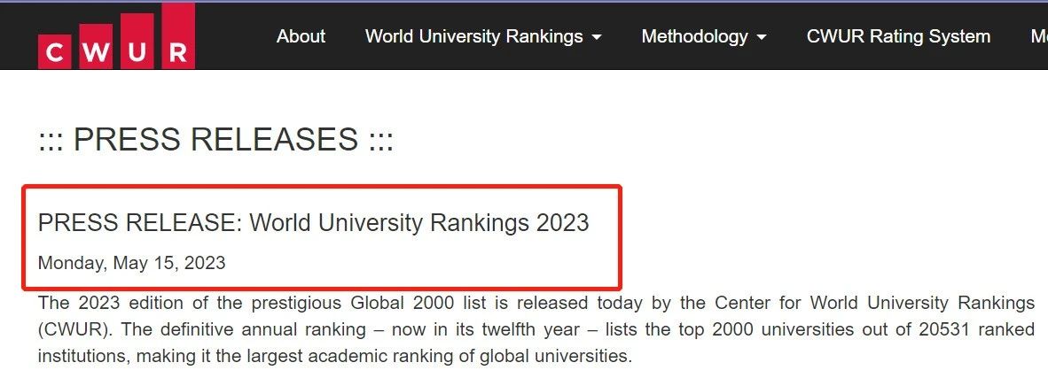 CWUR发布的世界大学排名是全球最大的世界大学排名榜单,今年该中心共对全球20531所大学机构进行了评分,最终排名榜单中涵盖了全球2000多所大学的排名情况。