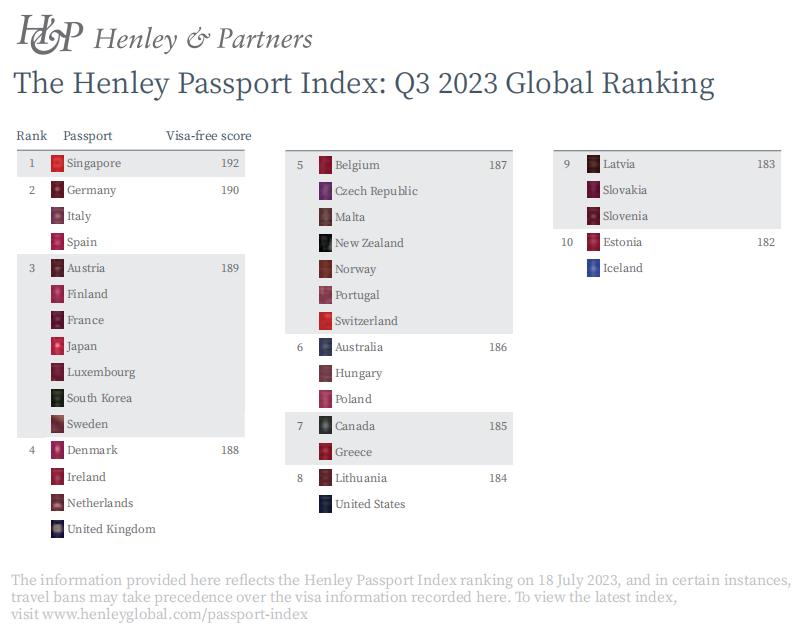 2023年全球护照指数新排名:欧洲国家表现亮眼