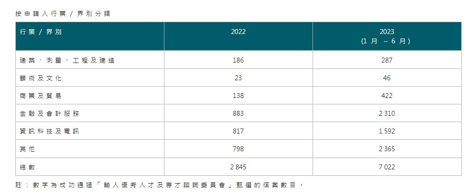 按申请人获批行业/界别分类。金融及会计服务获批人数最高,达2310人,占比约32%;其次是资讯科技及电讯行业,达1592人,占比23%;两者相加,获批人数为3902人,占比接近56%。如果是这些行业的朋友,一定要抓紧机会了。